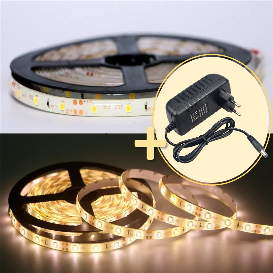 LED pásek 5m, teplá bílá 12V + zdroj zdarma