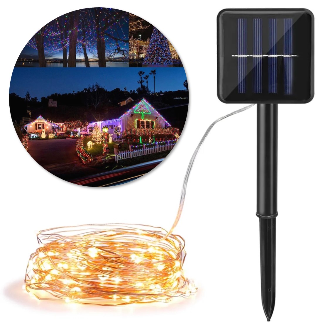 - Solární venkovní dekorativní LED osvětlení, 10m teplá bílá 100 LED