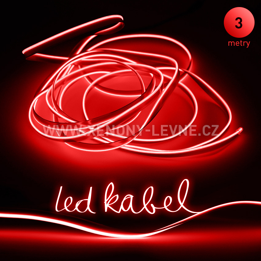 - Svítící elektrický drát - kabel, 3m, barva červená 12V