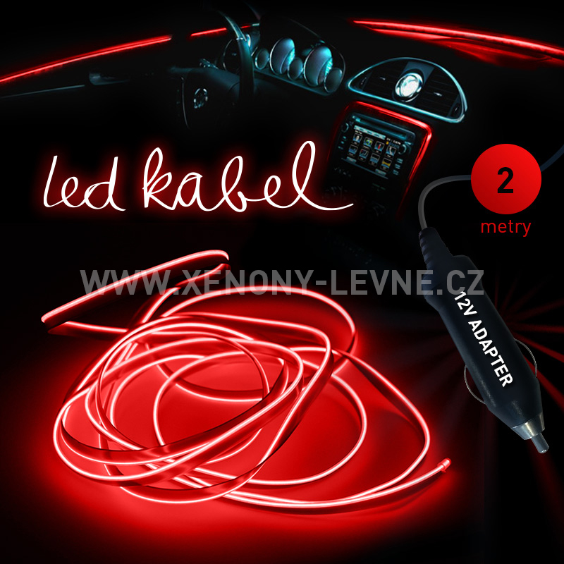 - Svítící elektrický kabel - drát, 2m, barva červená 12V