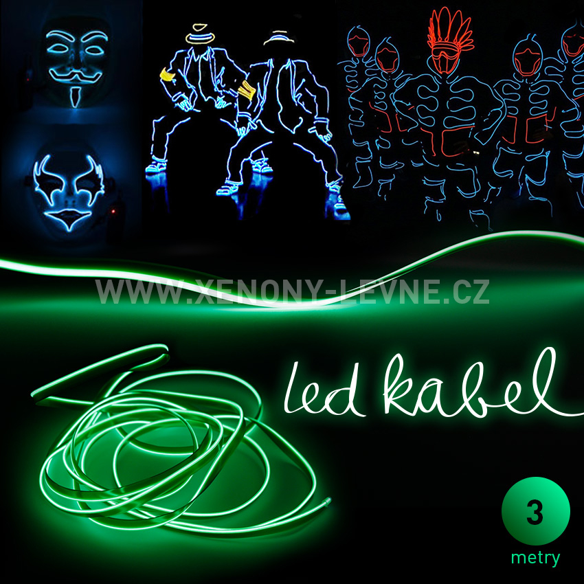 Svítící elektrický kabel - drát, 3m, barva zelená 12VSkladem245,00 Kč/ ks202,48 Kč bez DPH