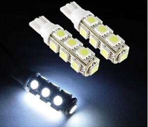 Parkovací světlo - 13 x LED SMD BÍLÉ - bezpaticové, 12V 9W. Úhel rozptylu světla 180°. Tato LED SMD žárovka je vyjímečná svou svítivostí. Oproti klasickým LED žárovkám svítí 20x více díky 13ti SMD diodám a svítí nejen dopředu, ale i do prostoru. Barva světla je shodná s barvou xenonových světlometů se svítivostí 6000K, proto je velice vhodná a efektní kombinovaní těchto výrobků.
